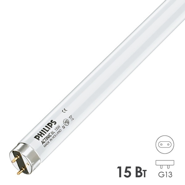Ультрафиолетовая лампа инсектицидная Филипс для шеллака, маникюра ногтей и полимеризации 15 Вт с цоколем G13 с защитной плёнкой 871150089858640