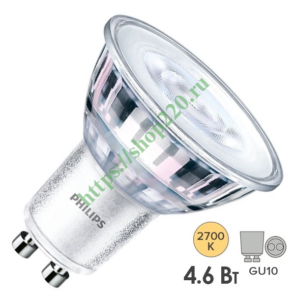 Светодиодная лампа акцентного освещения Филипс Essential LED, мощностью 4,6 Вт с цоколем GU10, теплый свет 929001215208