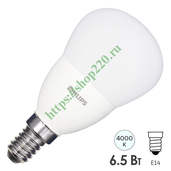 Лампа светодиодная шарик Philips LEDLustre 6,5W (60W) 840 550lm E14 230V P48 FR белый свет