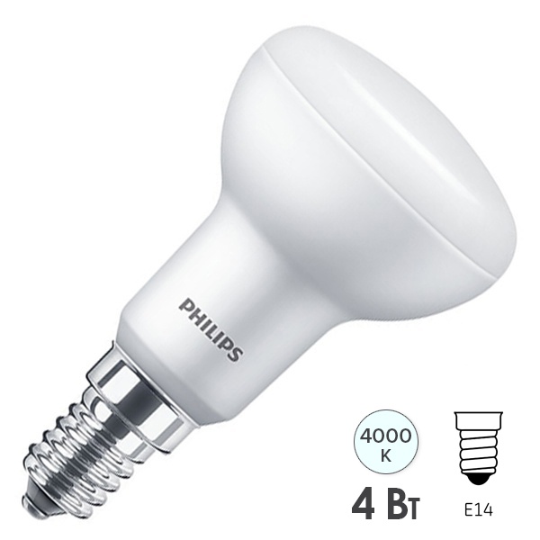 • Светодиодная лампа Philips LED R50 ESS 4W (50W) 230V 4000K E14 белый свет
