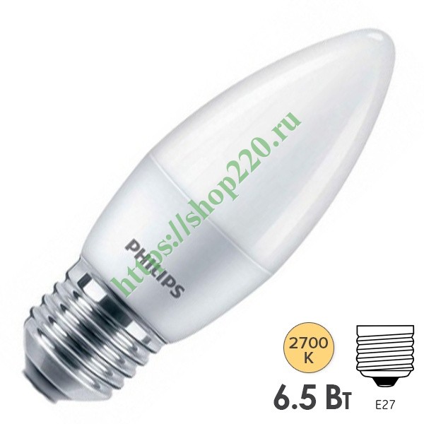 Энергосберегающая LED лампочка свеча мощностью 6,5 Ватт с цоколем E27 теплый свет 929002314007
