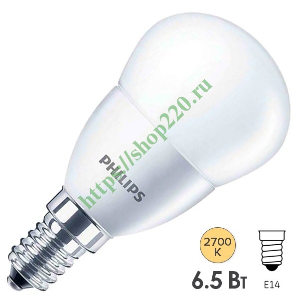 Светодиодная лампочка шарик Филипс, мощностью 6,5 Ватт, с цоколем E14, теплый свет 929001886807