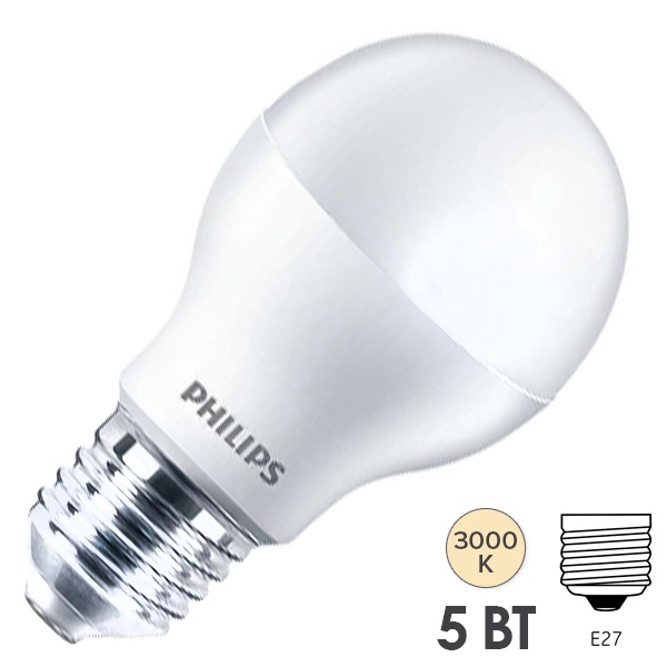 929002298687 Светодиодная лампа Philips ESSENTIAL LEDBulb A60 5W (40W) 3000K 220V E27 500lm