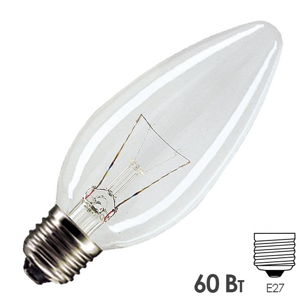 Обычная вольфрамовая лампа формы свеча мощностью 60 Вт на 220 Вольт с цоколем E27 общего назначения 921501544237