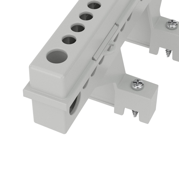 Данный клеммный блок оснащен суппортом, который монтируется на специальные профили, расположенные на задней внутренней части шкафа или распределительной коробки данного производителя. Элементы крепежа входят в комплект.