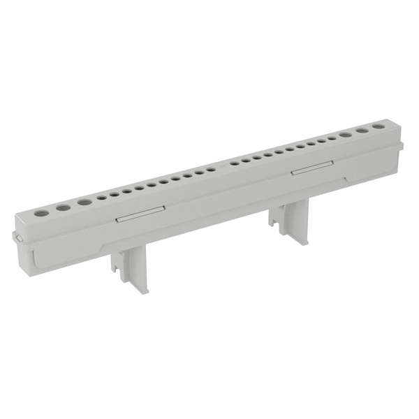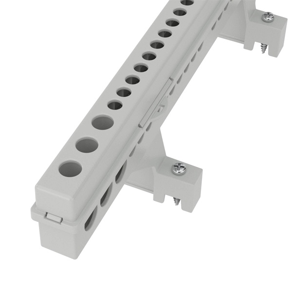 Все необходимое можно найти в каталоге на сайте нашего интернет-магазина. Например, здесь предлагается коммутационное устройство, распределяющее энергию с основной силовой линии на несколько рабочих участков электрической цепи. Это клеммный блок на 12 модулей. Данный блок состоит из держателя и двух колодок. Колодки рассчитаны на максимальную величину тока – 63 Ампера. Они производятся из медно-никелевого сплава и оборудованы винтовыми зажимами. Каждая колодка имеет одинаковое количество отверстий - 3х5,4+10х4,5 мм. Клеммный держатель изготовлен из специального стойкого к температурным перепадам полимера (от -60 до +80 градусов Цельсия) из категории термопластов, оборудован суппортом, посредством которого устанавливается в рабочую позицию на специальные монтажные профили, расположенные на внутренней части основания. Крепеж входит в комплект блока.