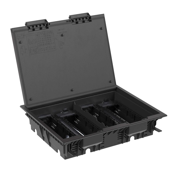 Напольные лючки c изменяемой глубиной на 24 модуля предназначены для организации рабочих мест с силовыми и информационными розетками в помещениях с открытым пространством. Лючки являются частью системы подпольной прокладки кабеля и интегрируются с кабельными трассами, расположенными в полу или под фальшполом. Установка производится непосредственно в плиты фальшполов.