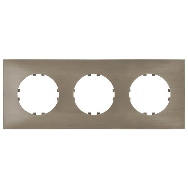 Рамка изготовлена из специального электротехнического негорючего термопластика бронзового цвета, не поддающегося отрицательному воздействию ультрафиолетового излучения. Изделие предназначается для защиты и декорирования трех, установленных в ряд скрыто в стену помещения, розеток различного назначения или выключателей от известного производителя Ecoplast серии Vintage.