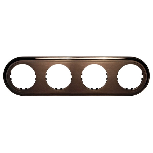 Представленная здесь установочная рамка на четыре поста, входящая в серийную коллекцию Vintage-Classic от известного отечественного производителя – компании Экопласт. Данная декоративная рамка адаптирована под любые механизмы и устройства серийной линейки изделий Vintage, а бронзовый цвет поверхности придает шарма.