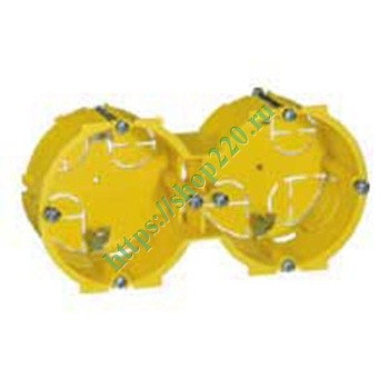 Установочная коробка диаметром на 4 модуля (2 поста) глубиной 40 мм для горизонтальной установки в гипсокартон. 89344