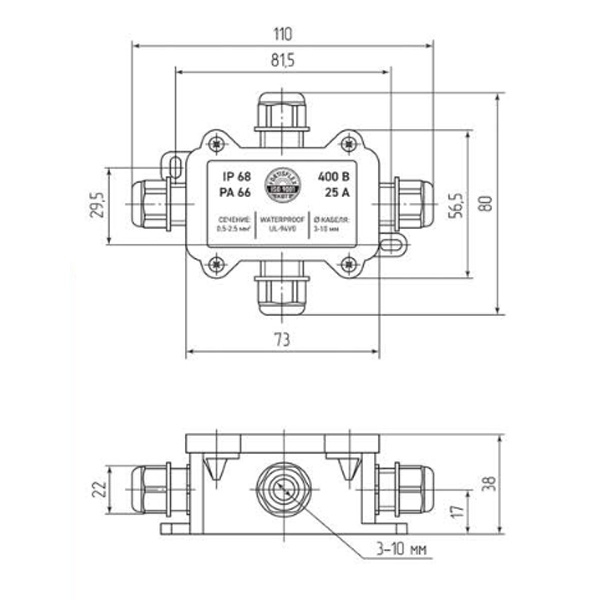 Дополнительные характеристики Тип изделия: разветвительная, распределительная, распаячная, монтажная коробка