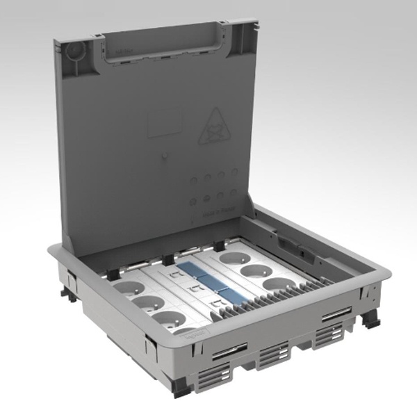 Напольные люки Legrand укомплектованны супортами для установки розеток Mosaic.