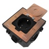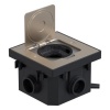 Добрый день, Василий.Под этот люк можно использовать следующие коробки: для монолита артикул 081988, для фальш-пола артикул 080188. В этот люк можно установить любой механизм Mosaic. Из розеток можем порекомендовать: без шторок артикул 077210, со шторками 077213.