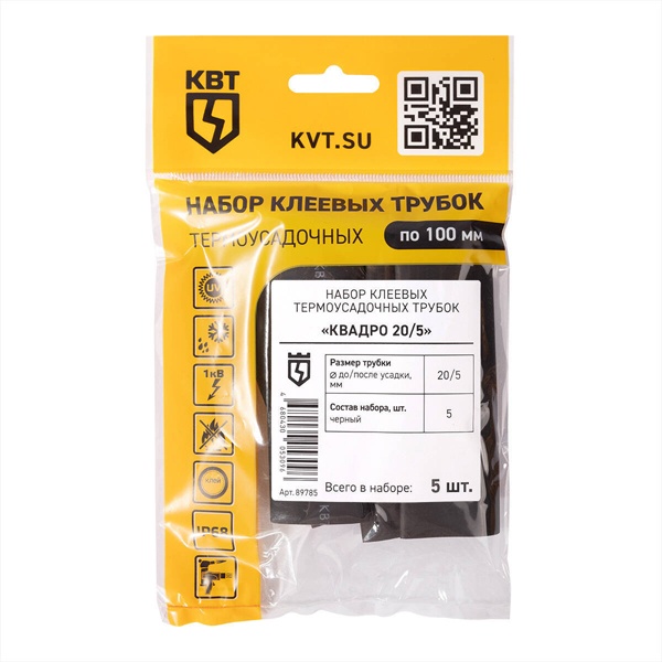 Комплект черной клеевой термоусадочной трубки 20/5 мм КВТ 89785