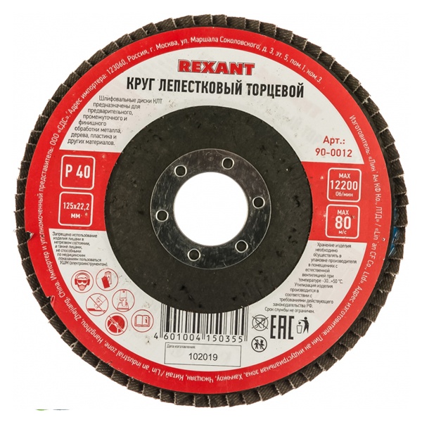 Шлифовальные диски КЛТ предназначены для предварительной, промежуточной и финишной обработки металла, дерева, пластика и других материалов. Конструктивная особенность кругов — веерное расположение лепестков абразивного материала, что обеспечивает плавную работу круга и отсутствие перегрева в зоне шлифования.Лепестковый круг КЛТ 125х22 REXANT изготовлен на основе шлифовальной шкурки на тканевой основе.Благодаря типу диска T-29 мы получаем более большое пятно контакта, что увеличивает скорость обработки поверхности и снижает шанс образования дефектов (зарезы, ямы, прижоги).Тканевая основа лепестков равномерно изнашивается в процессе работы, открывая следующий слой абразива, позволяя полностью использовать ресурс круга.