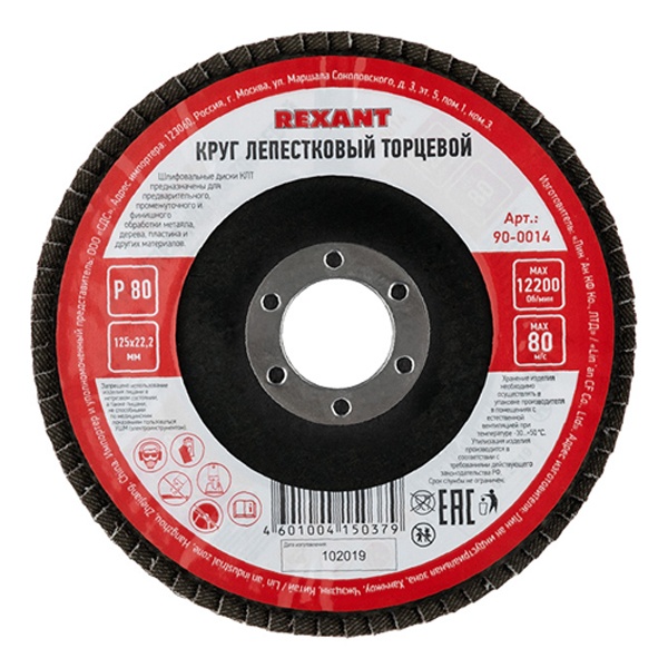 90-0014 Круг лепестковый торцевой P 80, 125х22,2 мм Rexant