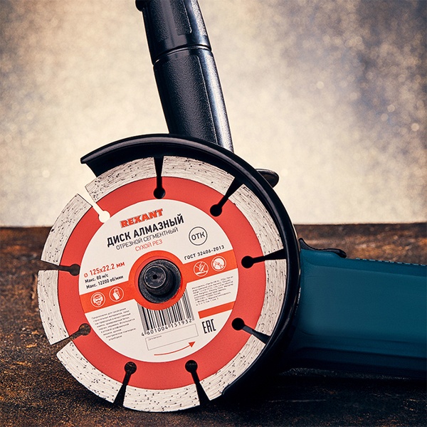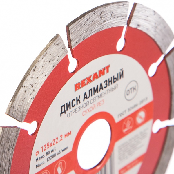 Диск алмазный отрезной сегментный 125x22.2 мм, для сухой резки по камню, бетону, керамике Рексант 90-0101