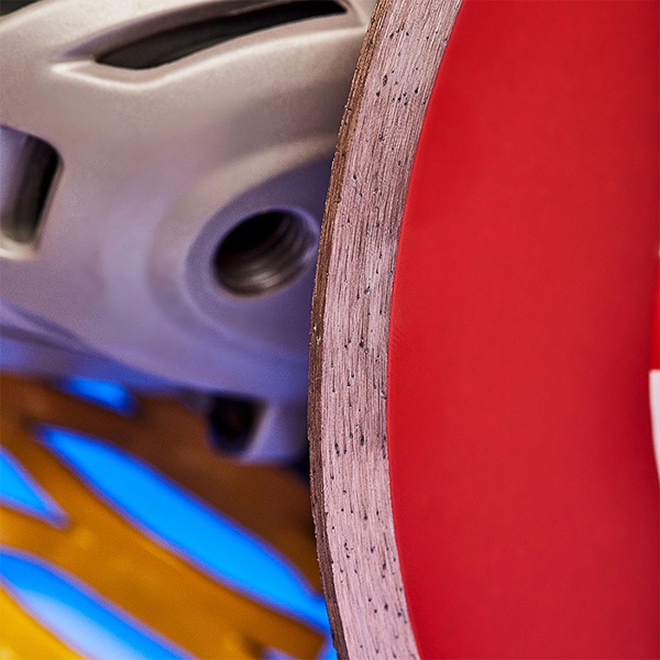 Благодаря особым пропорциям материалов, при истирании диска зачищаются новые слои алмазов, повышается производительность, ресурс работы. «Сплошная» кромка обеспечивает точность резки.