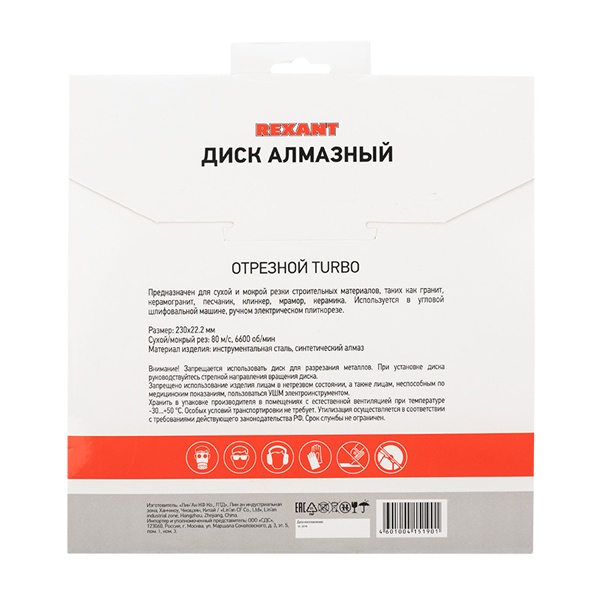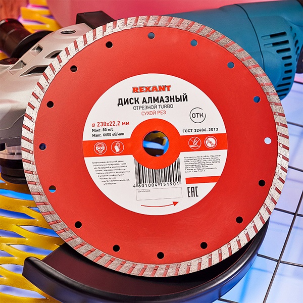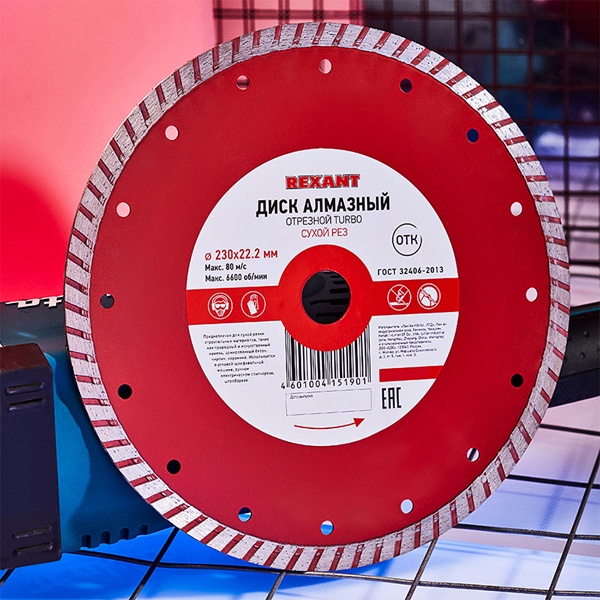 Диск алмазный отрезной Turbo 230x22.23х2,8x10 мм REXANT