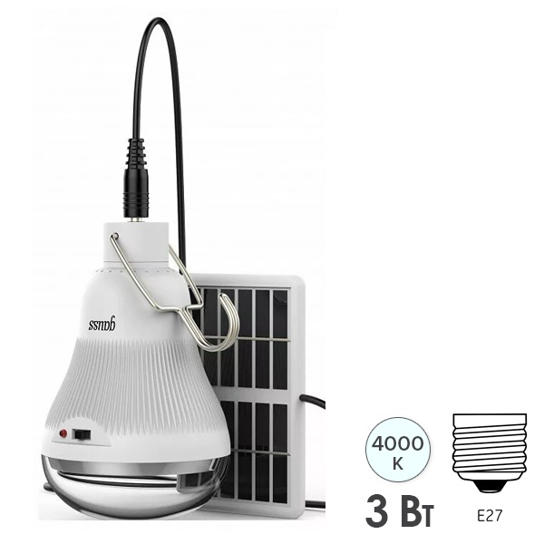 Светодиодная лампа Gauss A60 3W 130lm 4000K E27 с солнечной панелью LED 902102203