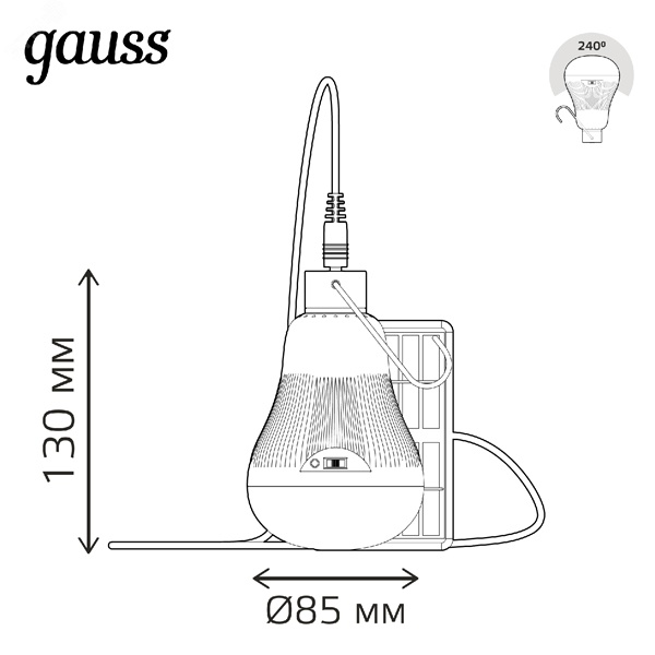 Лампа светодиодная Gauss A60 мощностью 3W(130лм), 4000K, цоколь E27 с солнечной панелью и аккумулятором 902102203