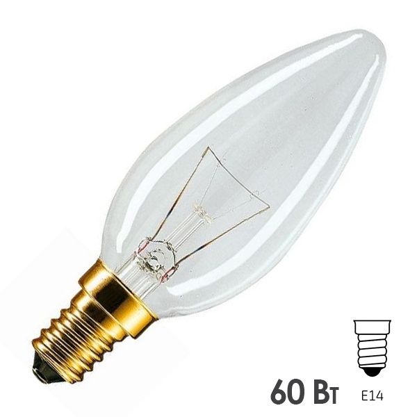 Обычная вольфрамовая лампа формы свеча мощностью 60 Вт на 220 Вольт с цоколем E14 миньон общего назначения 926000003017
