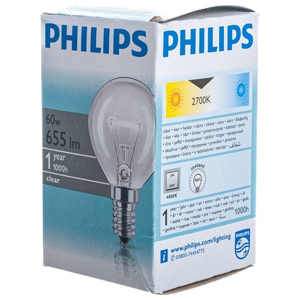 Лампа накаливания Stan 60Вт E14 230В P45 CL 1CT/10X10 Philips 926000005022