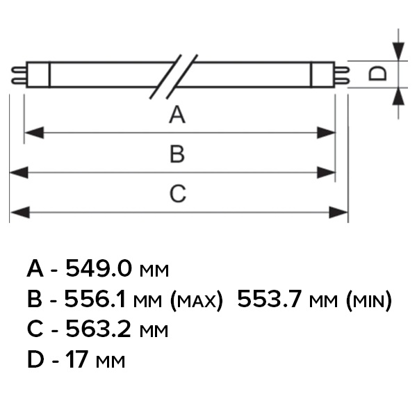 Двухцокольная лампа-трубка люминесцентная ЛЛ Т5 мощностью 14 Вт с цоколем G5 теплого белого света для ЭПРА 927926083055