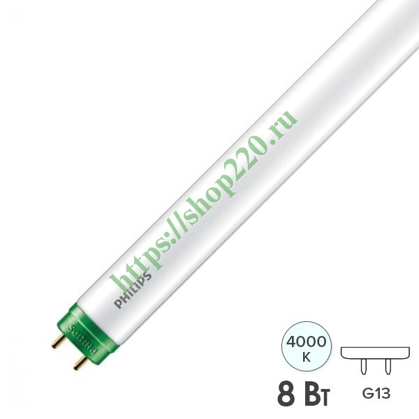 Трубчатая (линейная) светодиодная лампа Филипс с односторонним подключением, с цоколем G13, мощностью 8 Ватт, нейтральный белый свет, 600мм 929001184767