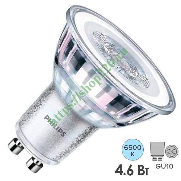 Светодиодная лампочка акцентного освещения Филипс для точечных светильников, мощностью 4,6 Ватт, с цоколем GU10, холодный дневной свет 929001218358