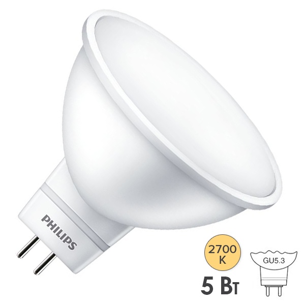 • Лампа светодиодная Philips ESS LED MR16 5W/827 2700K (50W) 220V GU5.3 теплый свет