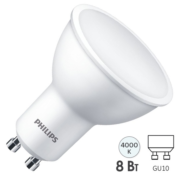 Светодиодная лампочка акцентного освещения Филипс для точечных светильников, мощностью 8 Ватт, с цоколем GU10, теплый белый свет 929002093417