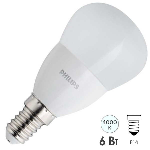 Светодиодная лампочка шарик Филипс ЭкоХоум, мощностью 6 Ватт, с цоколем E14, нейтральный белый свет 929002274037