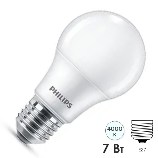 Энергосберегающая LED лампа Груша мощностью 7 Вт с цоколем E27 белого света, матовая колба 929002298717