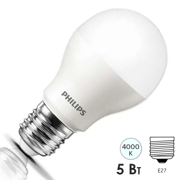 Энергосберегающая LED лампа Груша мощностью 5 Вт с цоколем E27 белого света, матовая колба 929002298787