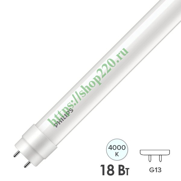Трубчатая (линейная) светодиодная лампа Филипс с двухсторонним подключением, с цоколем G13, мощностью 18 Ватт, нейтральный белый свет, 1200мм 929002375337