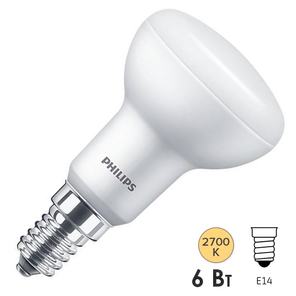 Светодиодная лампа Филипс LED R50 ESS мощностью 6 Ватт с цоколем E14, теплый белый свет 929002965587