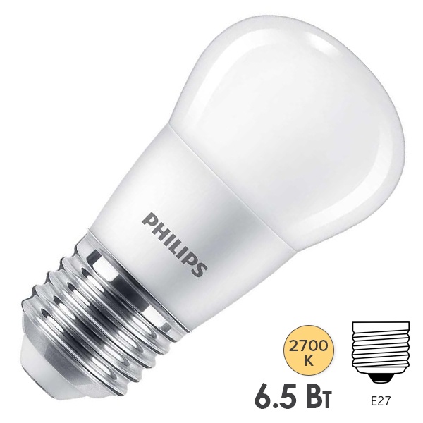 Светодиодная лампочка шарик Филипс, мощностью 6,5 Ватт, с цоколем E27, теплый свет 929002971207