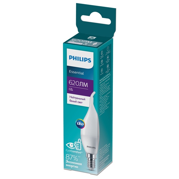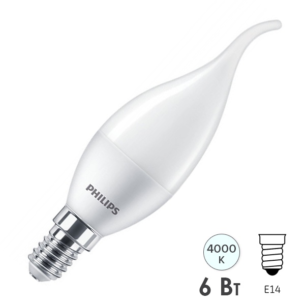 • Лампа светодиодная свеча на ветру Philips ESS LEDCandle B35 6W (75W) 840 230V E14 FR 620lm