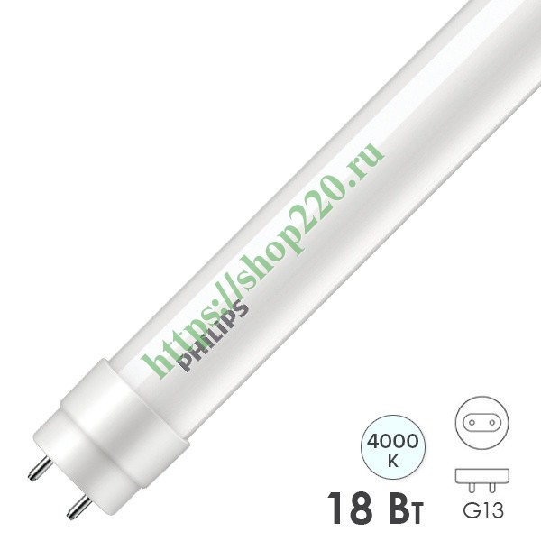 Трубчатая (линейная) светодиодная лампа Филипс с двухсторонним подключением, с цоколем G13, мощностью 18 Ватт, нейтральный белый свет, 1200мм 929003147037