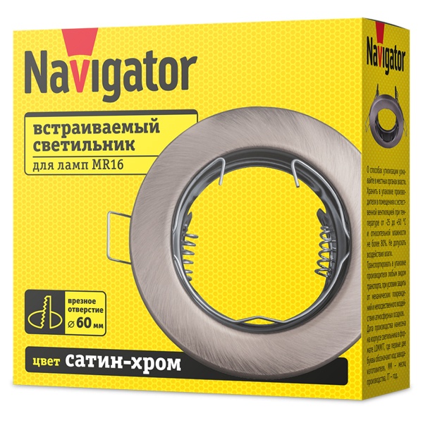 Встраиваемый точечный светильник Navigator под лампы MR16 с цоколем GU5.3 максимальной мощностью 50 Ватт, цвет сатин-хром 93014