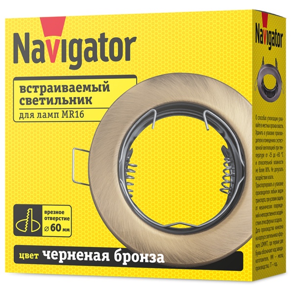 Встраиваемый точечный светильник Navigator под лампы MR16 с цоколем GU5.3 максимальной мощностью 50 Ватт, цвет черненая бронза 93017