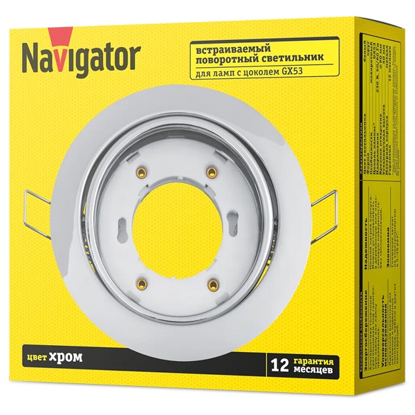 Светильник точечный потолочный встраиваемого монтажа Навигатор, под лампу с цоколем GX53, цвет хром 93032