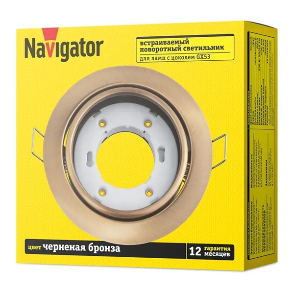 Встраиваемые декоративные поворотные светильники Navigator серии NGX для ламп с цоколем GX53 – энергосберегающая альтернатива светильникам под галогенную или лампу накаливания. Предназначены для освещения жилых и общественных помещений: гостиниц, магазинов, банков, лестниц, лифтов и т.п. Идеально подходят для подвесных и натяжных потолков, мебели и других конструкций.