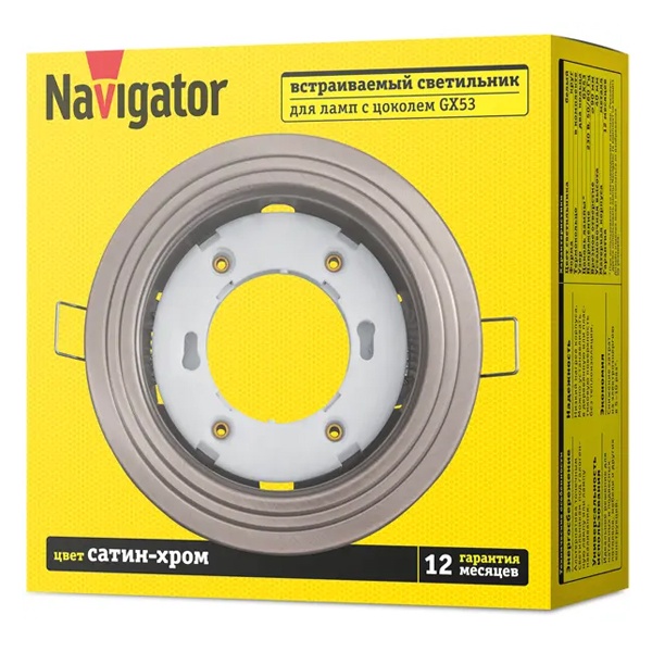 Светильник точечный потолочный встраиваемого монтажа Навигатор, под лампу с цоколем GX53, цвет сатин-хром 93040