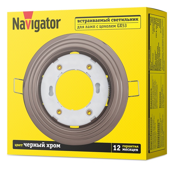 Светильник точечный потолочный встраиваемого монтажа Навигатор, под лампу с цоколем GX53, цвет черный хром 93041