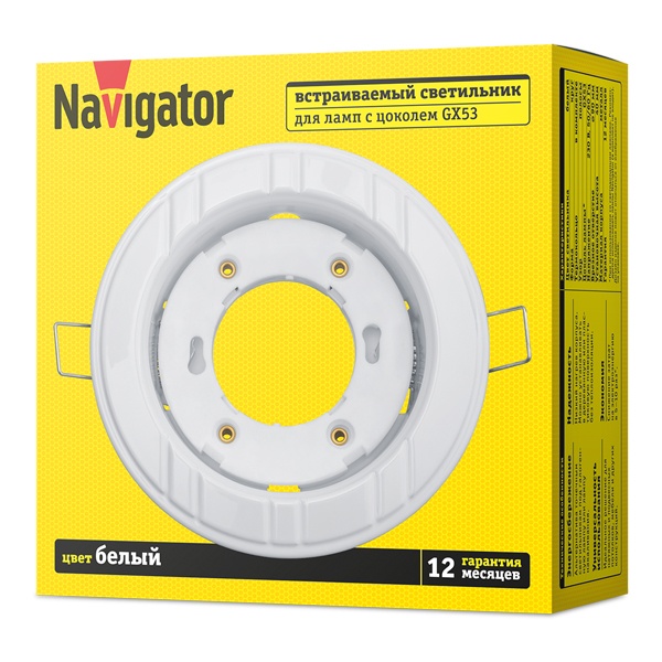 Встраиваемые декоративные поворотные светильники Navigator серии NGX для ламп с цоколем GX53 – энергосберегающая альтернатива светильникам под галогенную или лампу накаливания. Предназначены для освещения жилых и общественных помещений: гостиниц, магазинов, банков, лестниц, лифтов и т.п. Идеально подходят для подвесных и натяжных потолков, мебели и других конструкций.