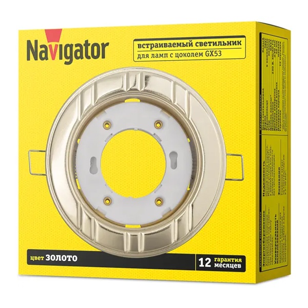 Светильник точечный потолочный встраиваемого монтажа Навигатор, под лампу с цоколем GX53, цвет золото 93045