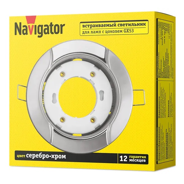 Встраиваемые декоративные поворотные светильники Navigator серии NGX для ламп с цоколем GX53 – энергосберегающая альтернатива светильникам под галогенную или лампу накаливания. Предназначены для освещения жилых и общественных помещений: гостиниц, магазинов, банков, лестниц, лифтов и т.п. Идеально подходят для подвесных и натяжных потолков, мебели и других конструкций.