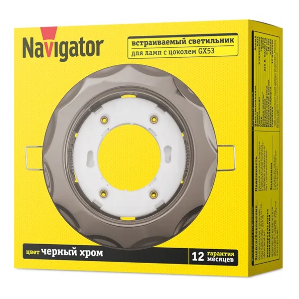 Светильник круглый с узором звезда, встраиваемого монтажа Навигатор, под лампу с патрононом GX53, цвет черный/хром 93062
